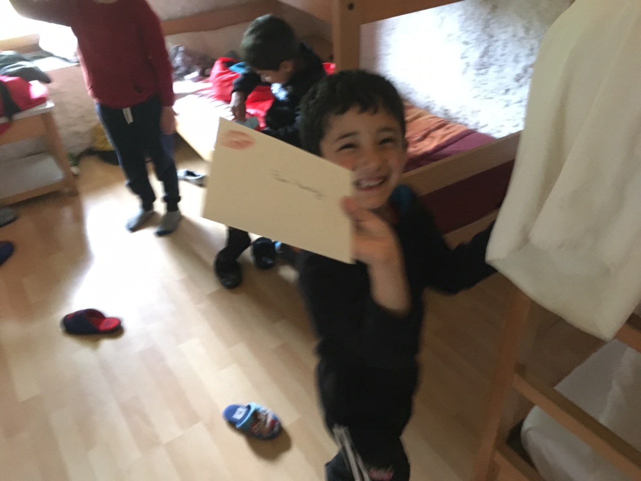 Avant de se doucher et préparer pour la boum, on a reçu les lettres. On était trop contents.