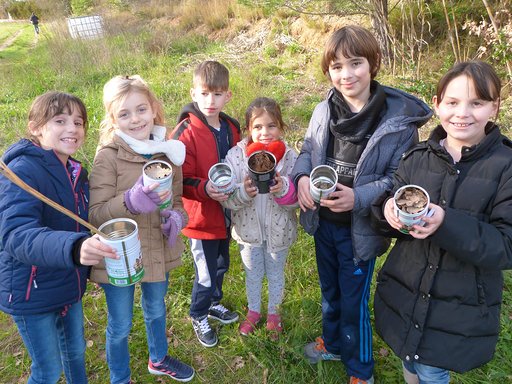 Aujourd’hui, nous avons fait plusieurs ateliers décloisonnés dans le cadre des vendredis « éco-école » : plantation de pommes de terre et oignons, hôtel à insecte, observation de la nature, fabrication de bombes de graines, etc …