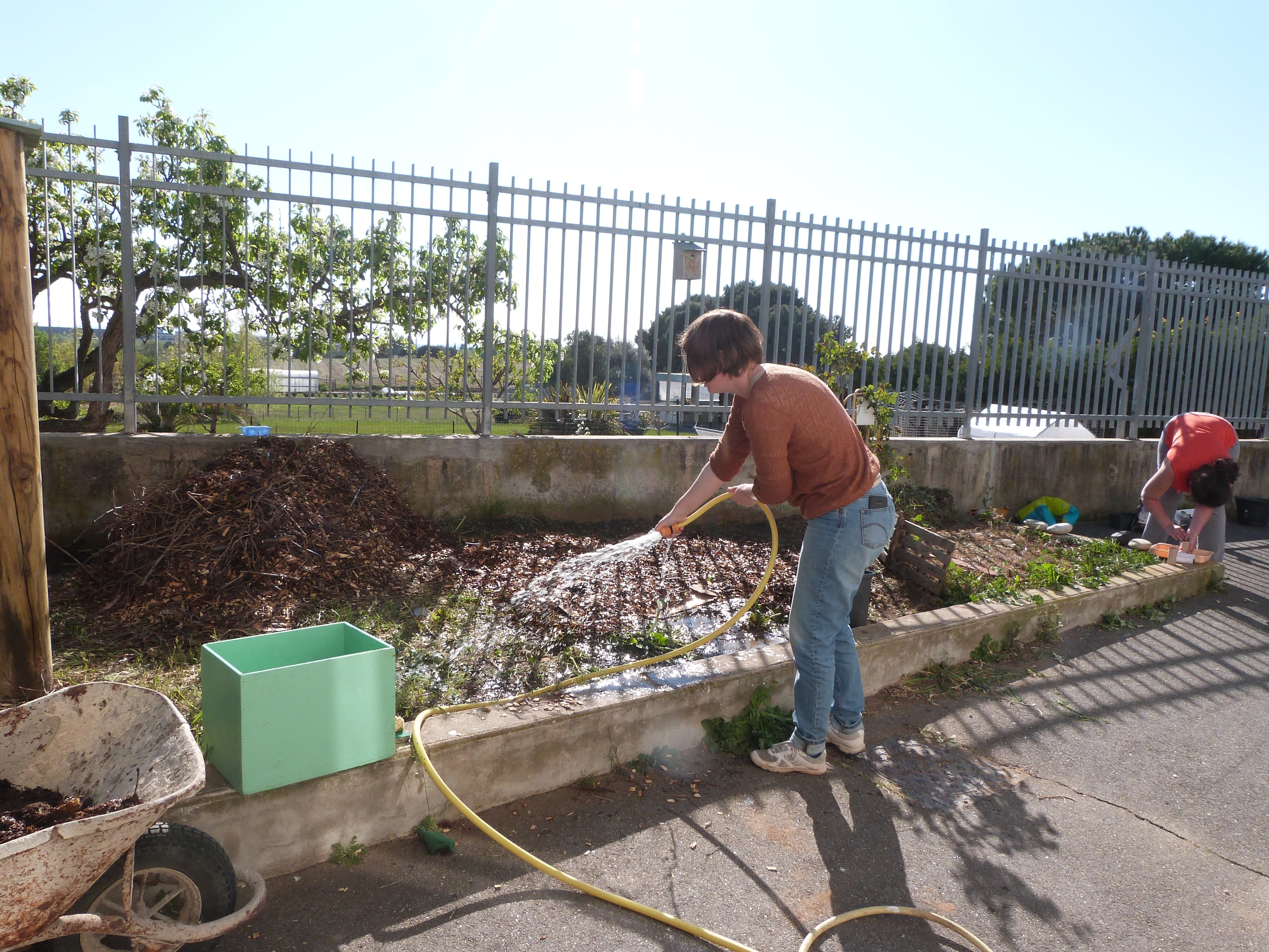 Par ailleurs on purge le composteur, on disperse le broyat, on parle jardin et compost …